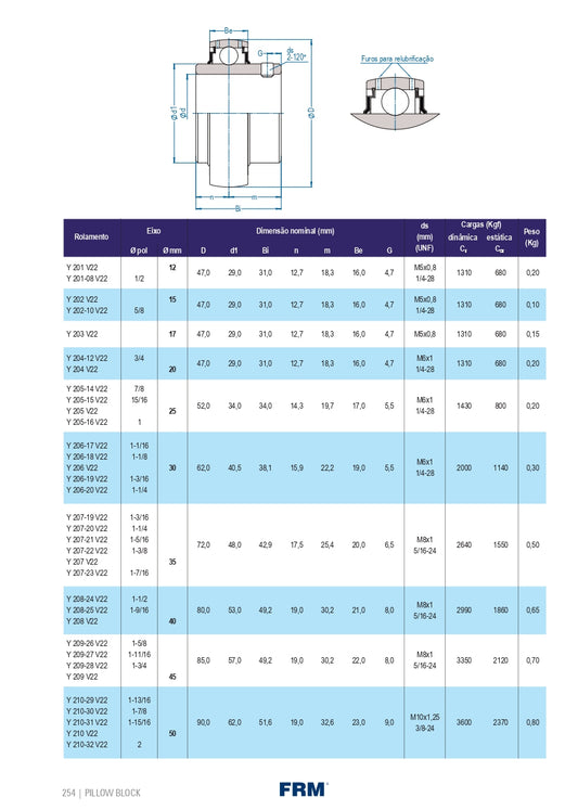 Rolamento Radial de Esferas Y 210 v22 - FRM