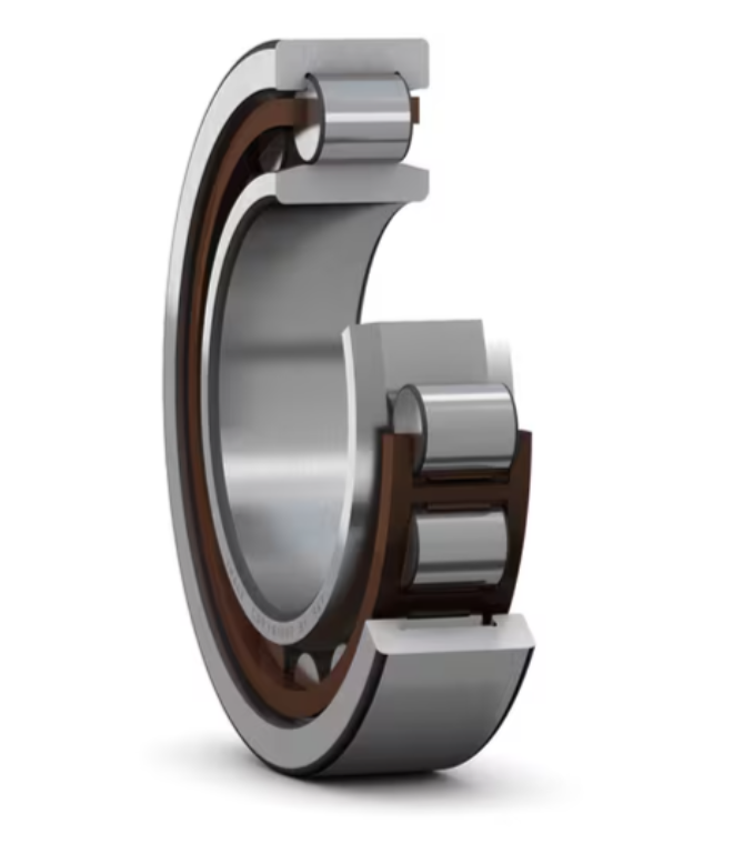 Os rolamentos de rolos cilíndricos de uma carreira são projetados para suportar cargas radiais elevadas em conjunto com altas velocidades. Com dois flanges integrais no anel externo e nenhum flange no anel interno, os rolamentos modelo NU podem suportar deslocamento axial em ambas as direções. Uma característica importante é o modelo separável, que facilita a montagem e permite que os componentes do rolamento sejam trocados.